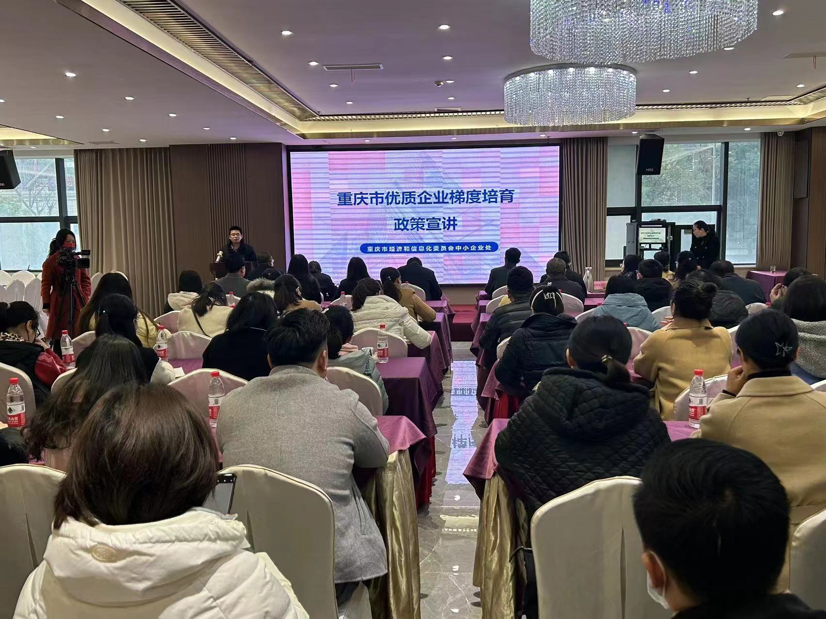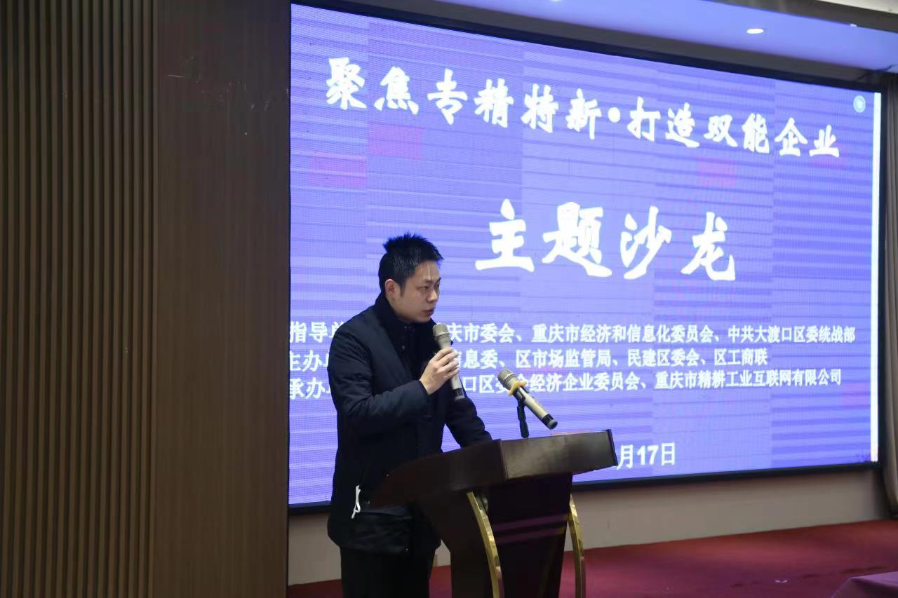 区经济信息委邀请相关职能部门,围绕我市惠企政策、知识产权保护等进行分享交流,让政策直达企业、有效惠及企业。活动中,市经济信息委中小企业处相关负责人从优质企业类别、“专精特新”政策支持、创新性中小企业等方面,为参会的各企业代表详细解读了“专精特新”优质企业的梯度培育政策;区市场监督管理局相关负责人结合具体案例,围绕高价值专利培育、知识产权质押融资、知识产权维权援助等内容,就知识产权相关政策进行了详细阐述。随后,重庆精耕企业管理咨询有限公司和重庆盎瑞悦科技有限公司代表针对企业数智化思路和成果、企业发展之路进行了分享。