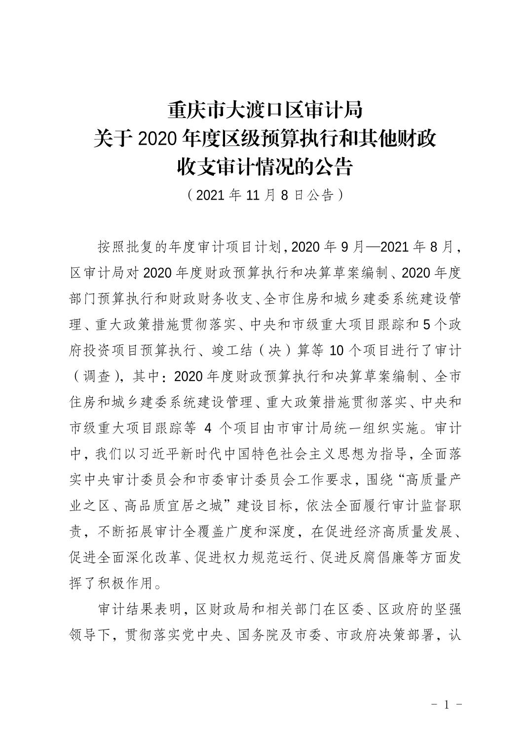 重庆市365bet网站平台_365国际体育官网_o365邮箱审计局关于2020年度区级预算执行和其他财政收支审计情况的公告