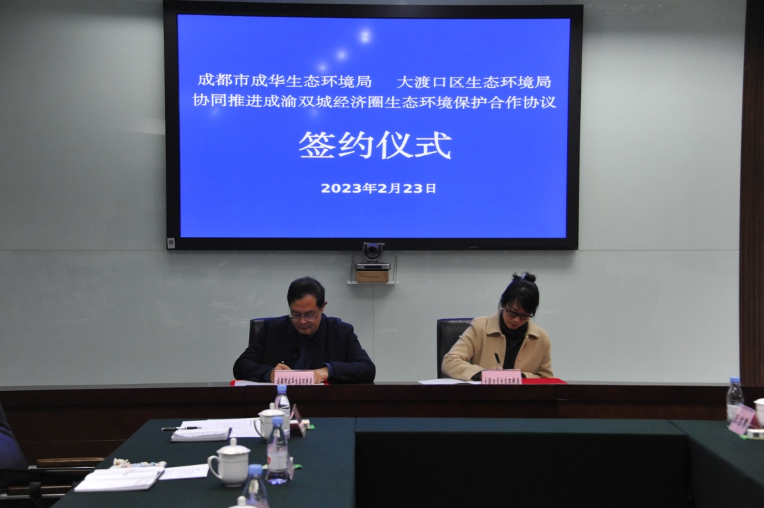 为干好“一号工程”,进一步融入成渝地区双城经济圈建设,提升我区生态环境保护能级,2月23日,成都市成华生态环境局一行莅临我区交流考察,召开座谈会。会上,双方交流分享了生态文明体系建设、生态环境保护督察整改、环境应急处置等常态化机制,探讨了大气、水、土壤、噪声污染防治重难点及防控措施,尤其针对同为老工业基地转型面临的土壤污染防治、绿色转型发展、减污降碳协同增效等方面进行了深入探讨。会议从明确发展目标、确立领导体系、建立工作制度、提升科研水平、发展环保产业、共享基础信息数据、锻炼干部队伍、加强执法交流等八个方面达成了一致,并签订了《协同推进成渝双城经济圈生态环境保护战略合作协议》。会后,我局邀请成都市成华生态环境局一行实地参观了重庆工业文化博览园、重庆三峰环境集团,介绍我区从“工业锈带”蝶变为“城市秀带”发展历程,并积极推动三峰垃圾焚烧技术在四川地区的应用。