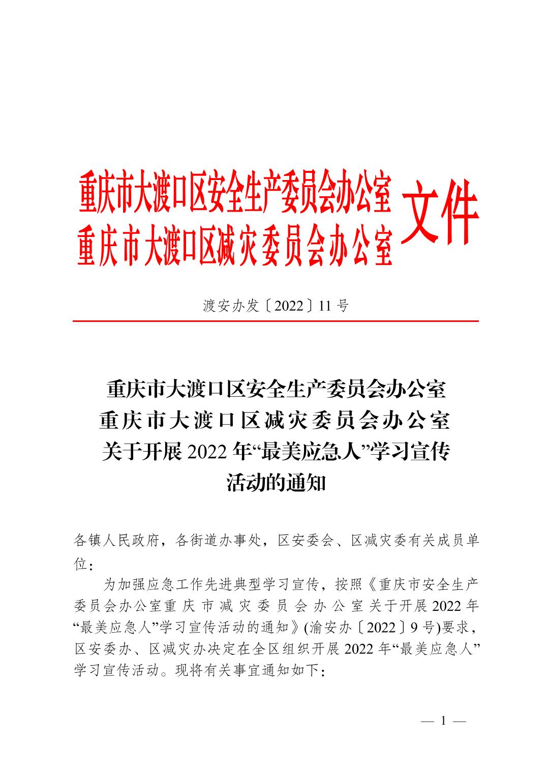 | [ 发文字号 ] | 渡安办发〔2022〕11号 |