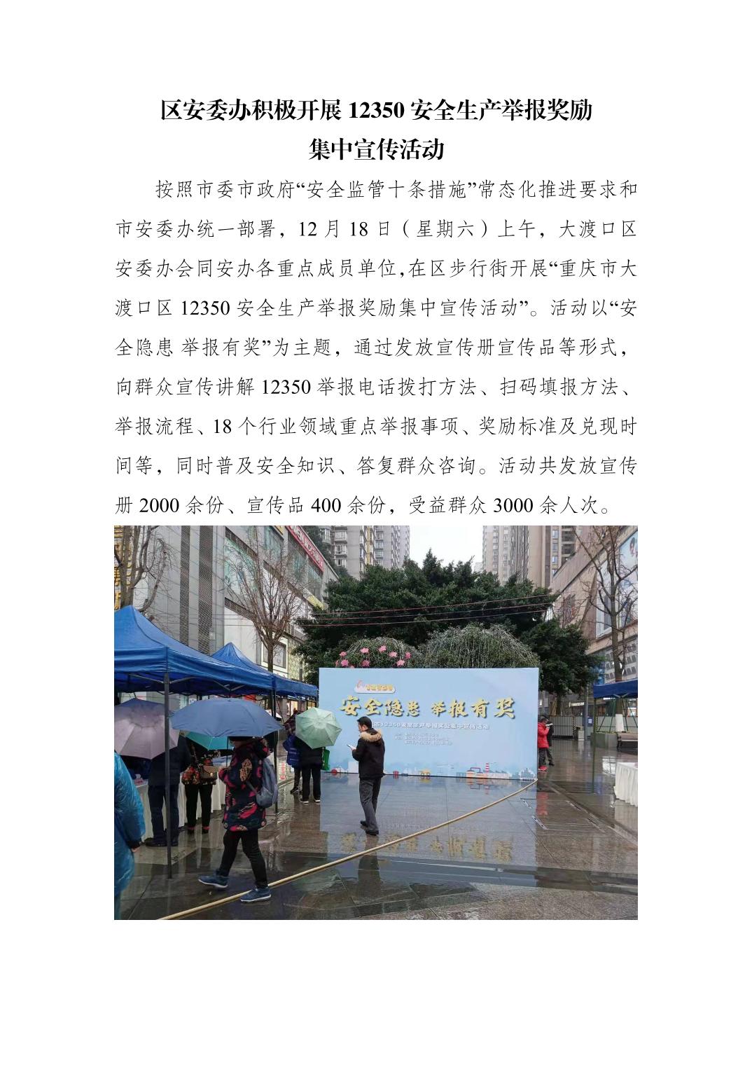 区安委办积极开展12350安全生产举报奖励集中宣传活动