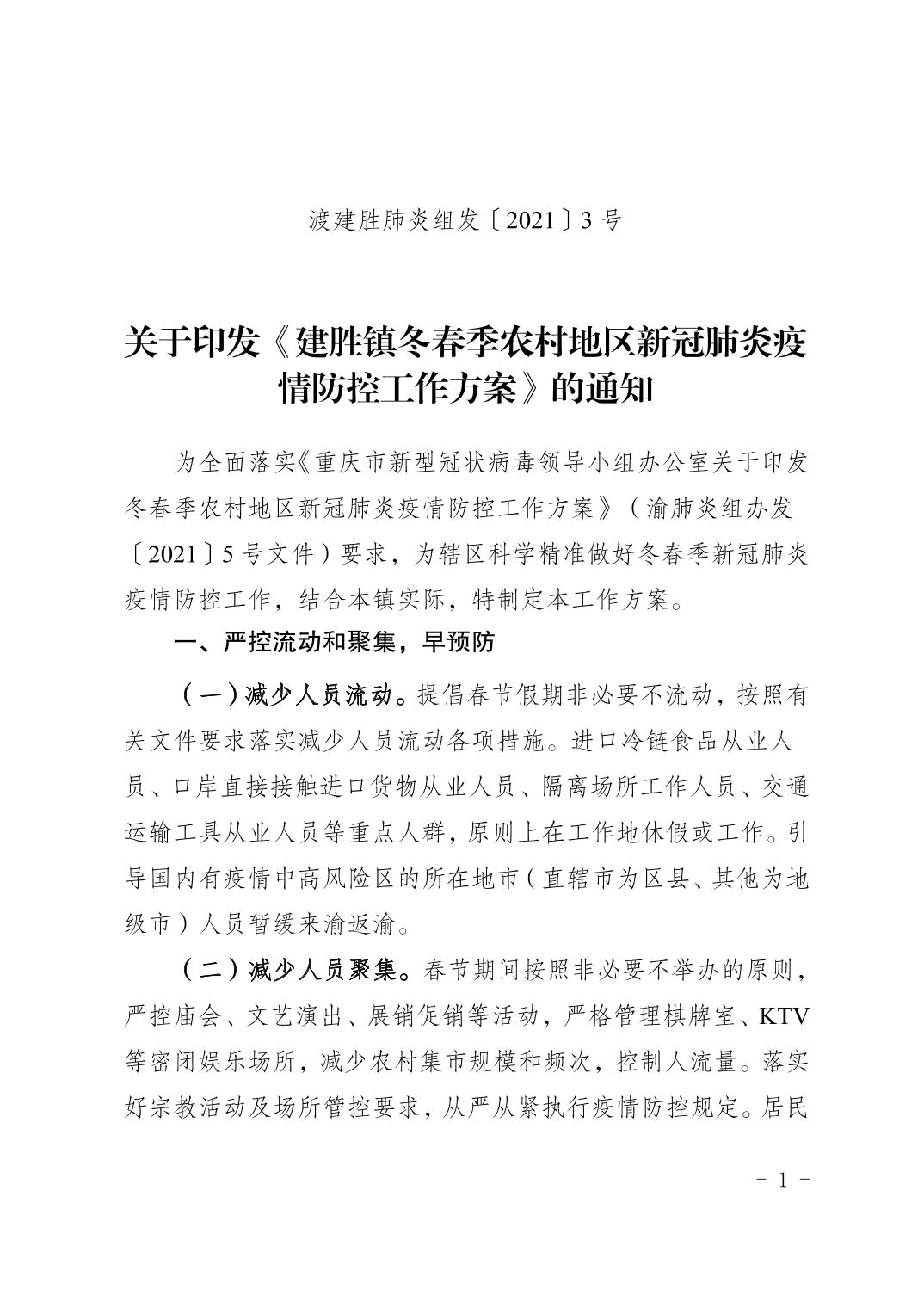 关于印发《建胜镇冬春季农村地区新冠肺炎疫情防控工作方案》的通知