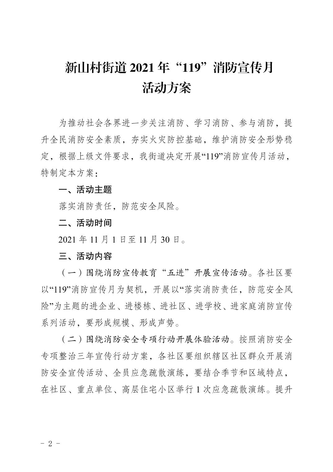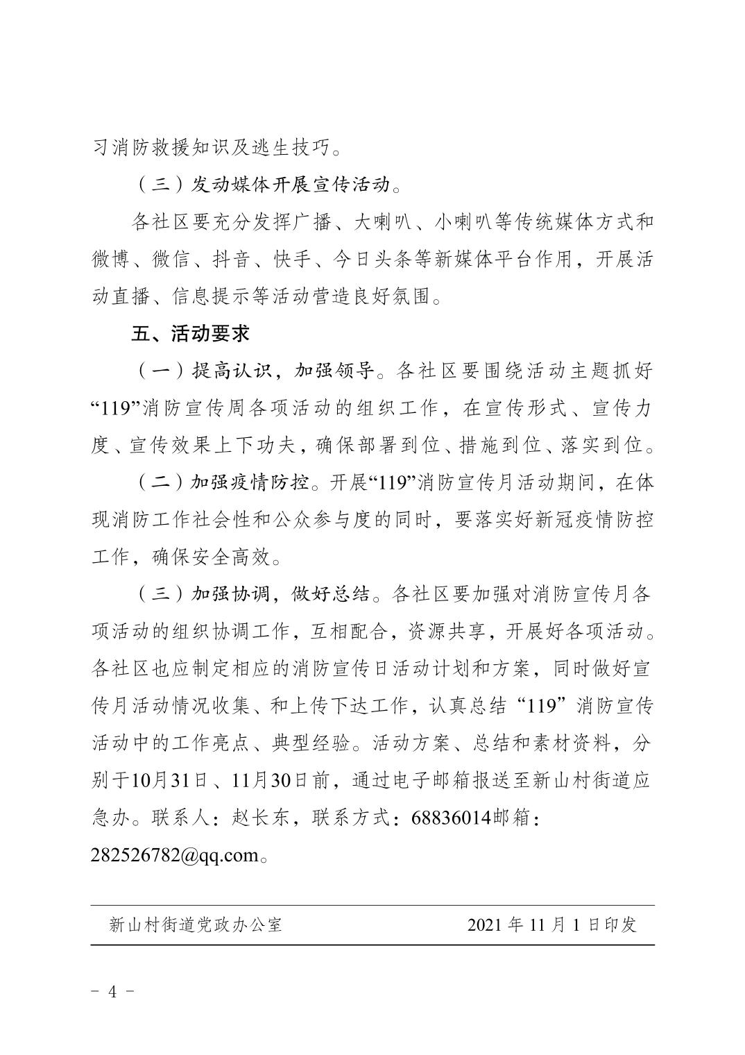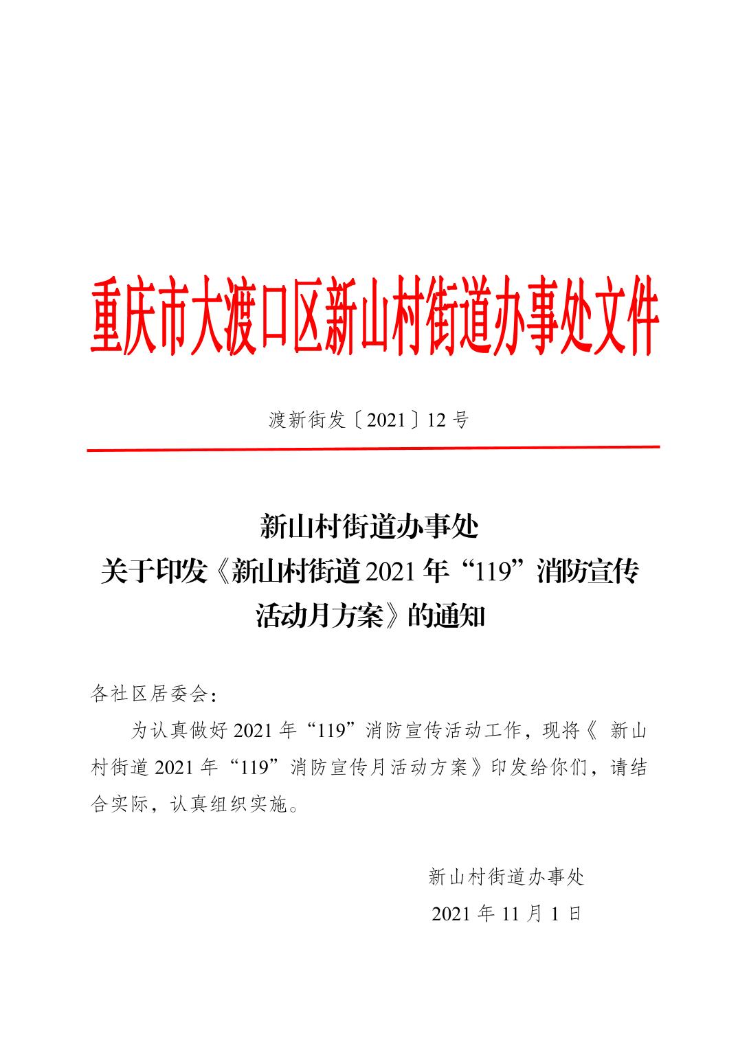 新山村街道办事处关于印发《新山村街道2021年“119”消防宣传活动月方案》的通知