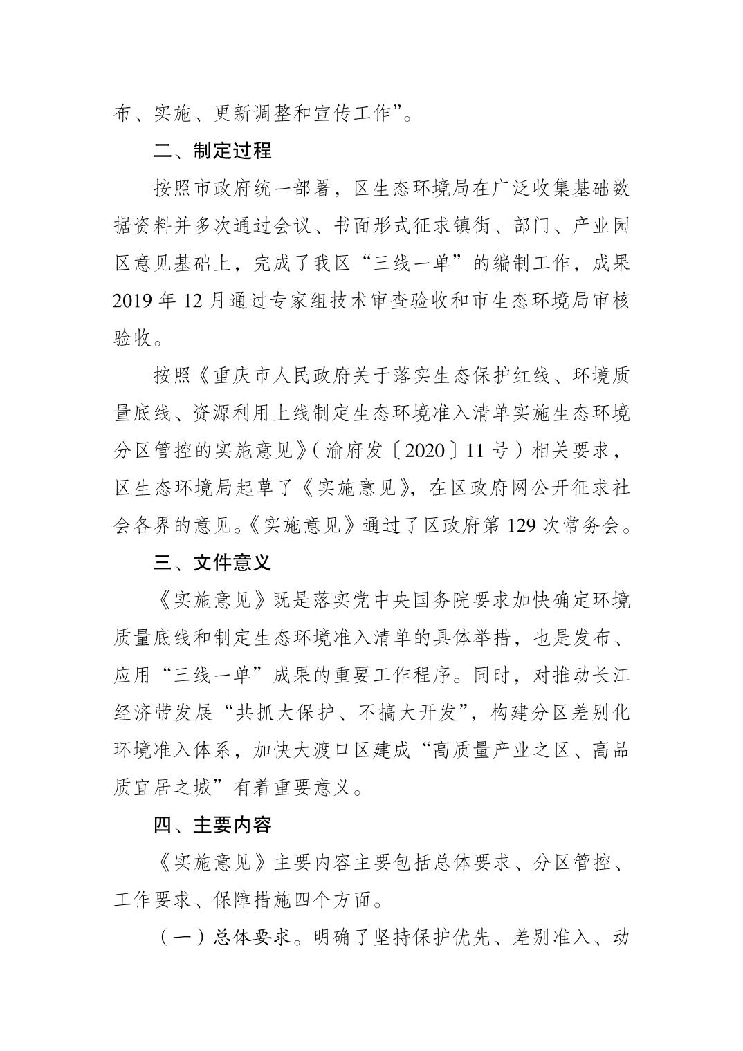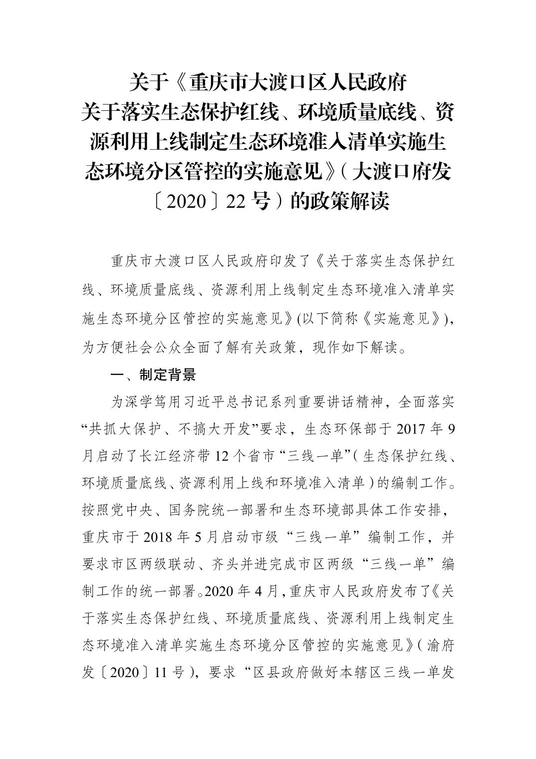 关于《重庆市365bet网站平台_365国际体育官网_o365邮箱人民政府关于落实生态保护红线、环境质量底线、资源利用上线制定生态环境准入清单实施生态环境分区管控的实施意见》(大渡口府发〔2020〕22号)的政策解读.pdf